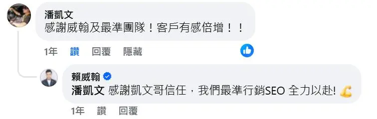 「感謝威翰及最準團隊!客戶有感倍增!!」