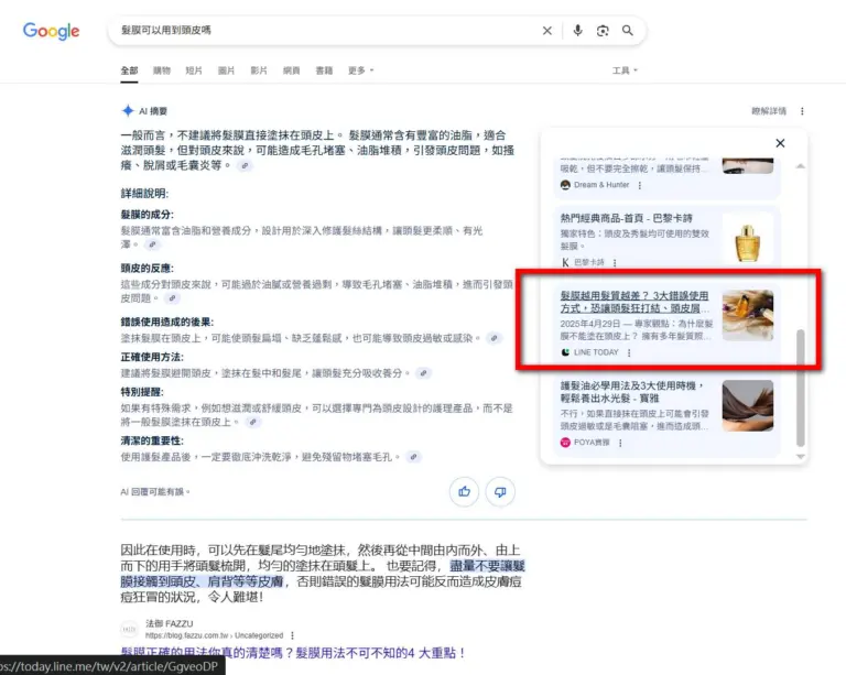 2. 當用戶在 AI 平台問相關問題時,AI 答案裡主動引用「法御」的新聞稿內容。