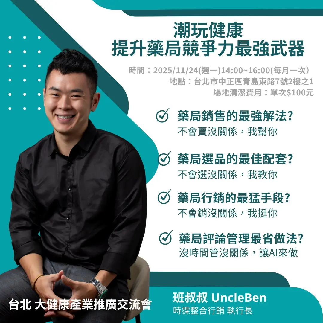 這一場,UncleBen 會帶你看見藥局經營的關鍵四題: